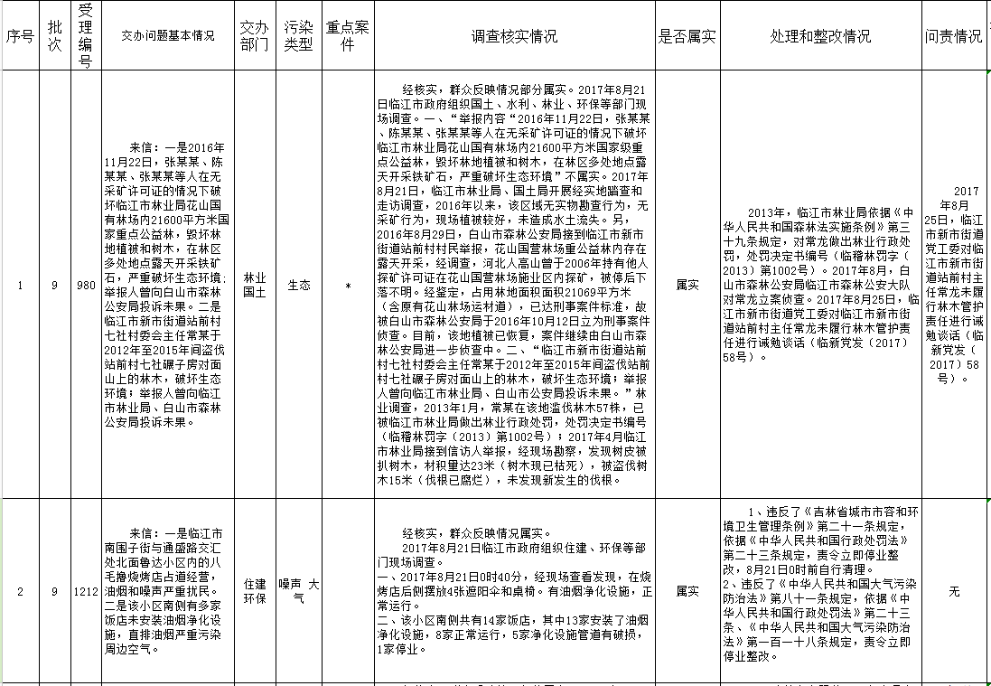 临江市群众信访举报转办和边督边改公开情况一览表(第9批)