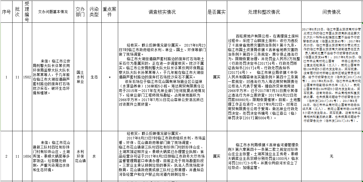 临江市群众信访举报转办和边督边改公开情况一览表(第11批)