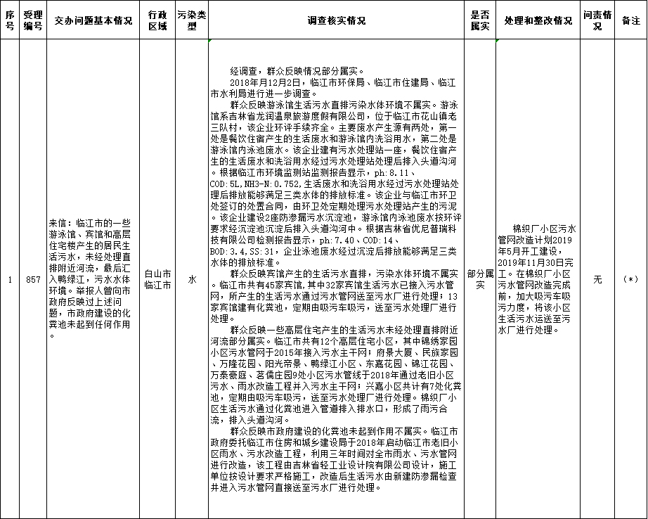 白山市群众信访举报转办和边督边改公开情况一览表(第8-16批补报 2018年12月8日)
