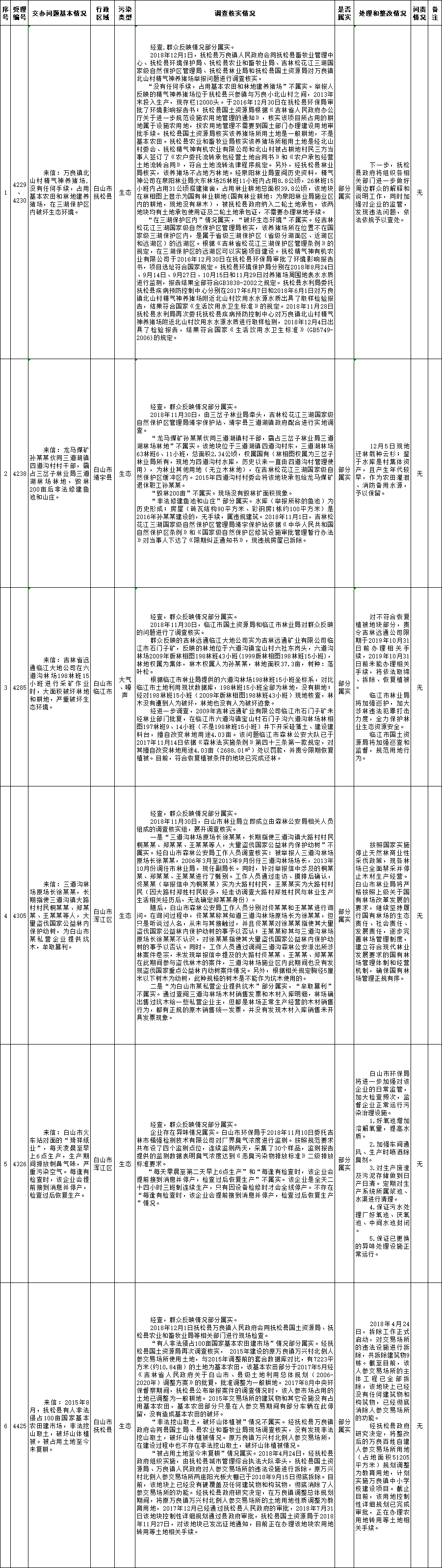 白山市群众信访举报转办和边督边改公开情况一览表(第24批 2018年12月8日)