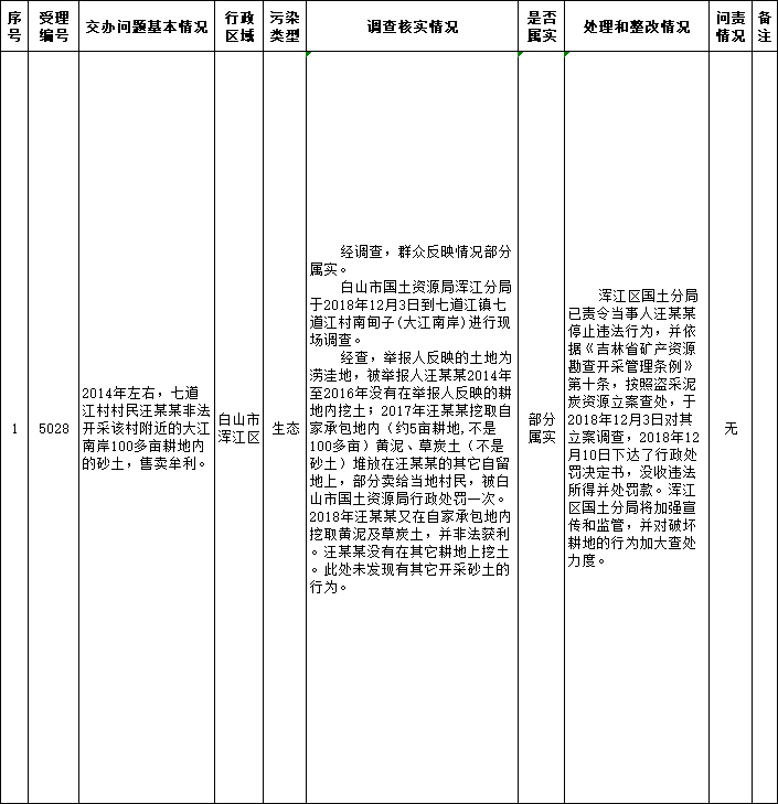 白山市群众信访举报转办和边督边改公开情况一览表( 第3-28批补报 2018年12月14日)