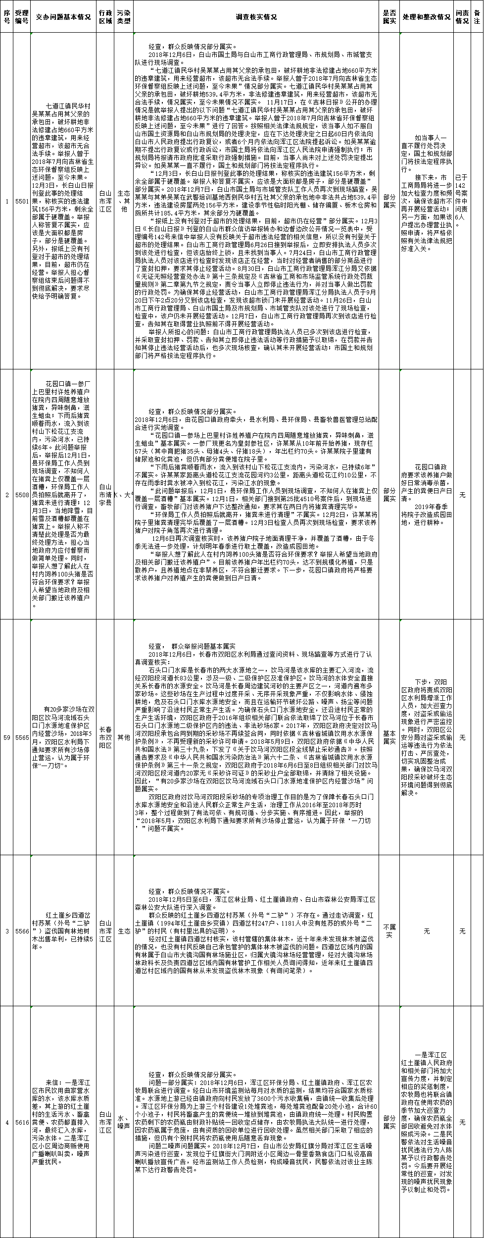白山市群众信访举报转办和边督边改公开情况一览表(第30批 2018年12月14日)