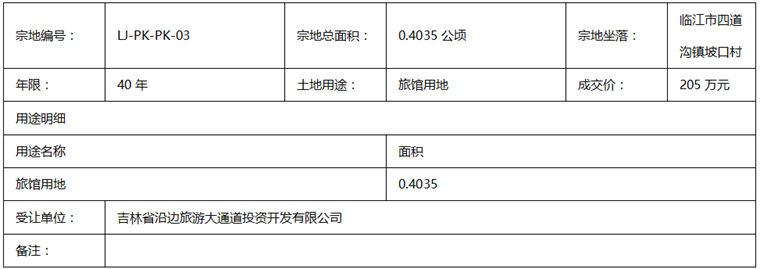 临江市自然资源和林业局国有土地使用权招拍挂出让成交公示(2025-G-015)