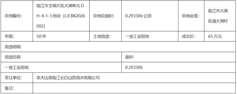 临江市自然资源和林业局国有土地使用权招拍挂出让成交公示(2026-G-002)