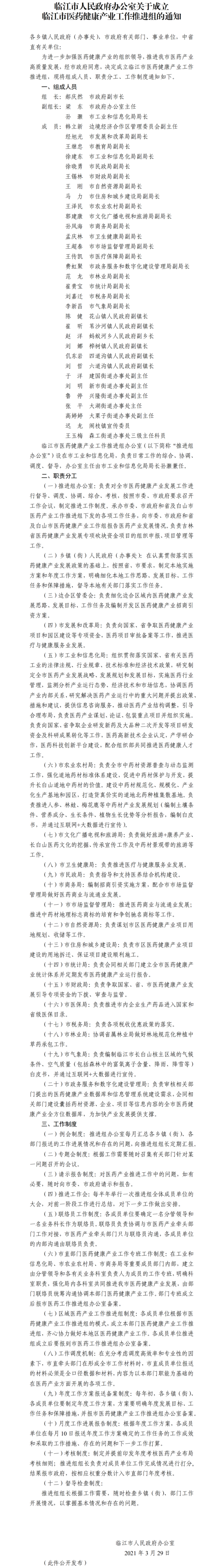 临江市人民政府办公室关于成立临江市医药健康产业工作推进组的通知(临政办函〔2021〕12号)