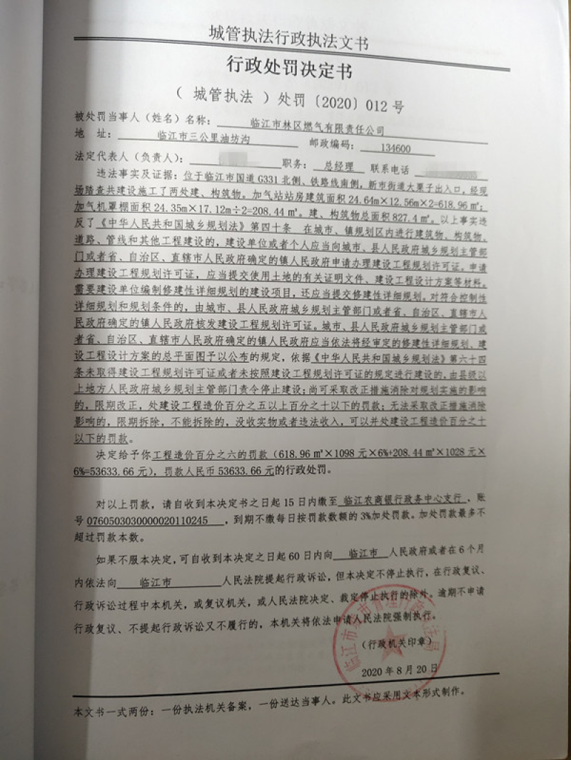 城管执法处罚【2020】012号