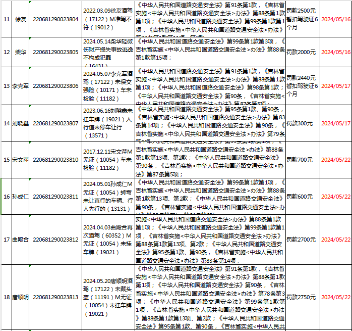 临江市公安局交通管理大队2024年5月(2)行政处罚