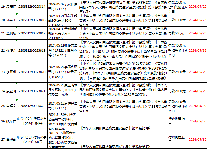 临江市公安局交通管理大队2024年5月(3)行政处罚