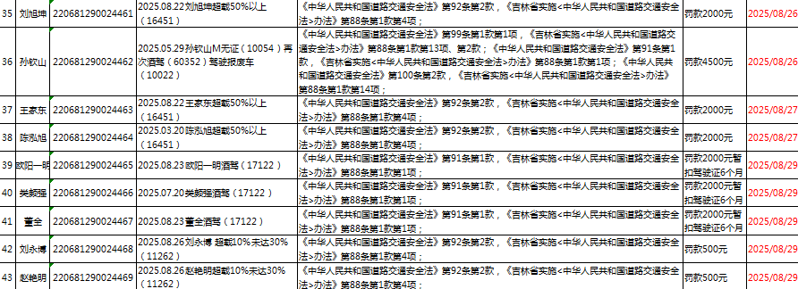 | 临江市公安局交通管理大队2025年8月(3)行政处罚 |