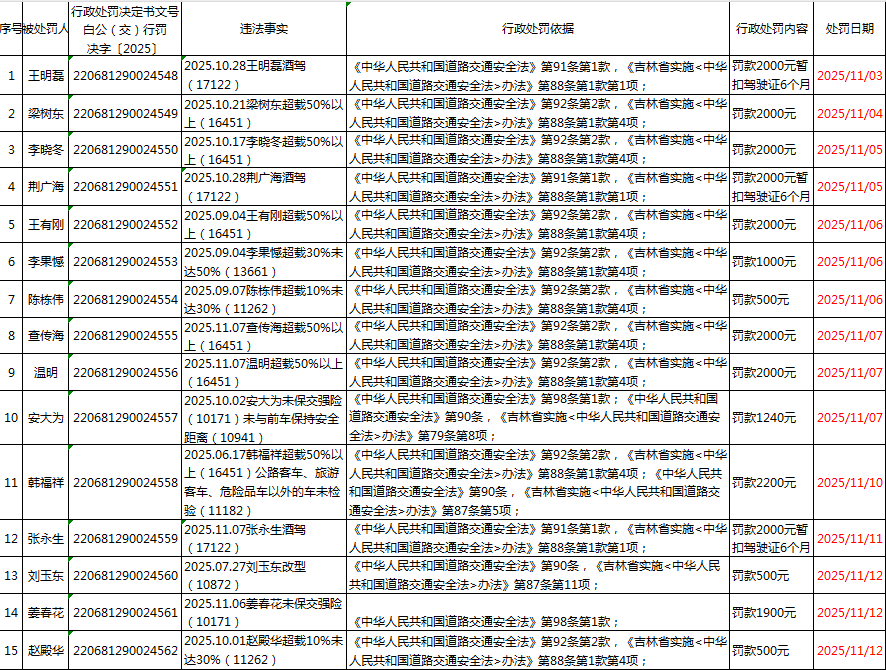 | 临江市公安局交通管理大队2025年11月(1)行政处罚 |