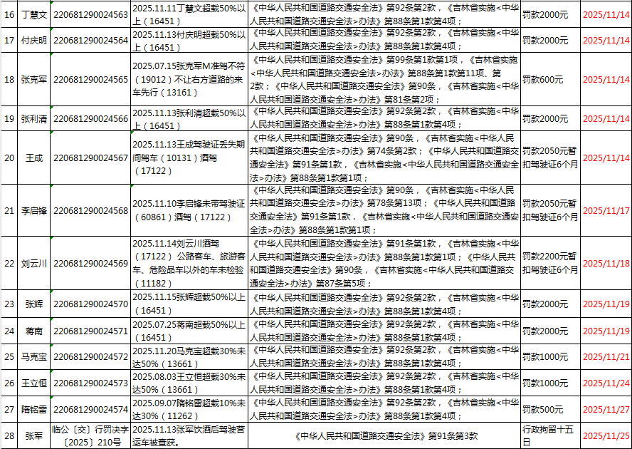 | 临江市公安局交通管理大队2025年11月(2)行政处罚 |