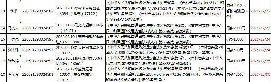 | 临江市公安局交通管理大队2025年12月(2)行政处罚 |