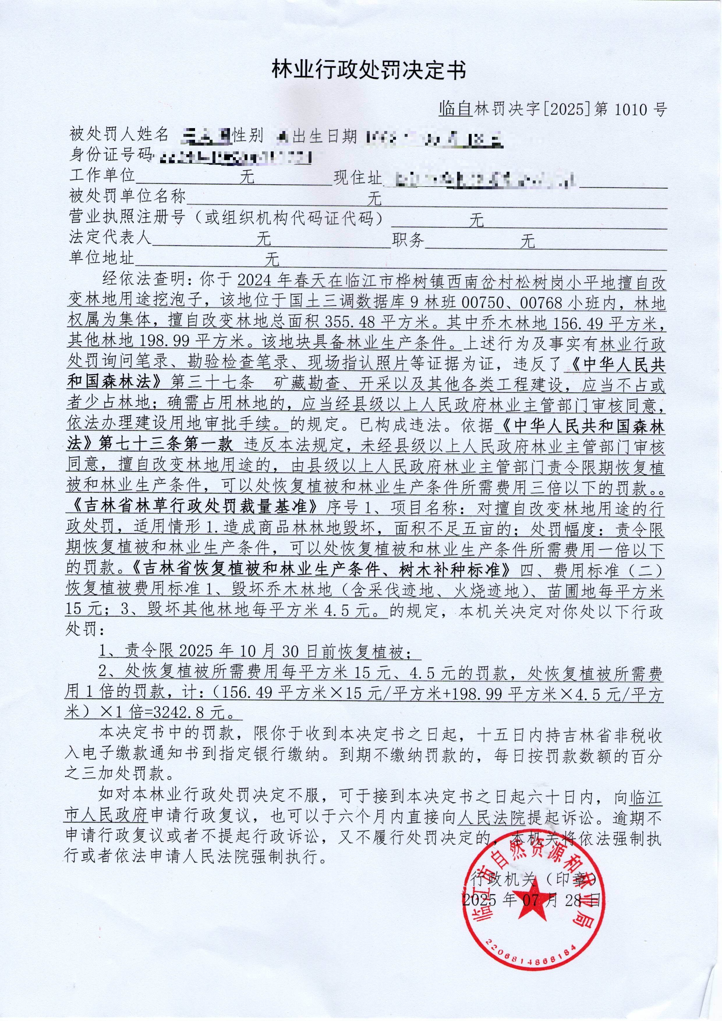 林业行政处罚决定书