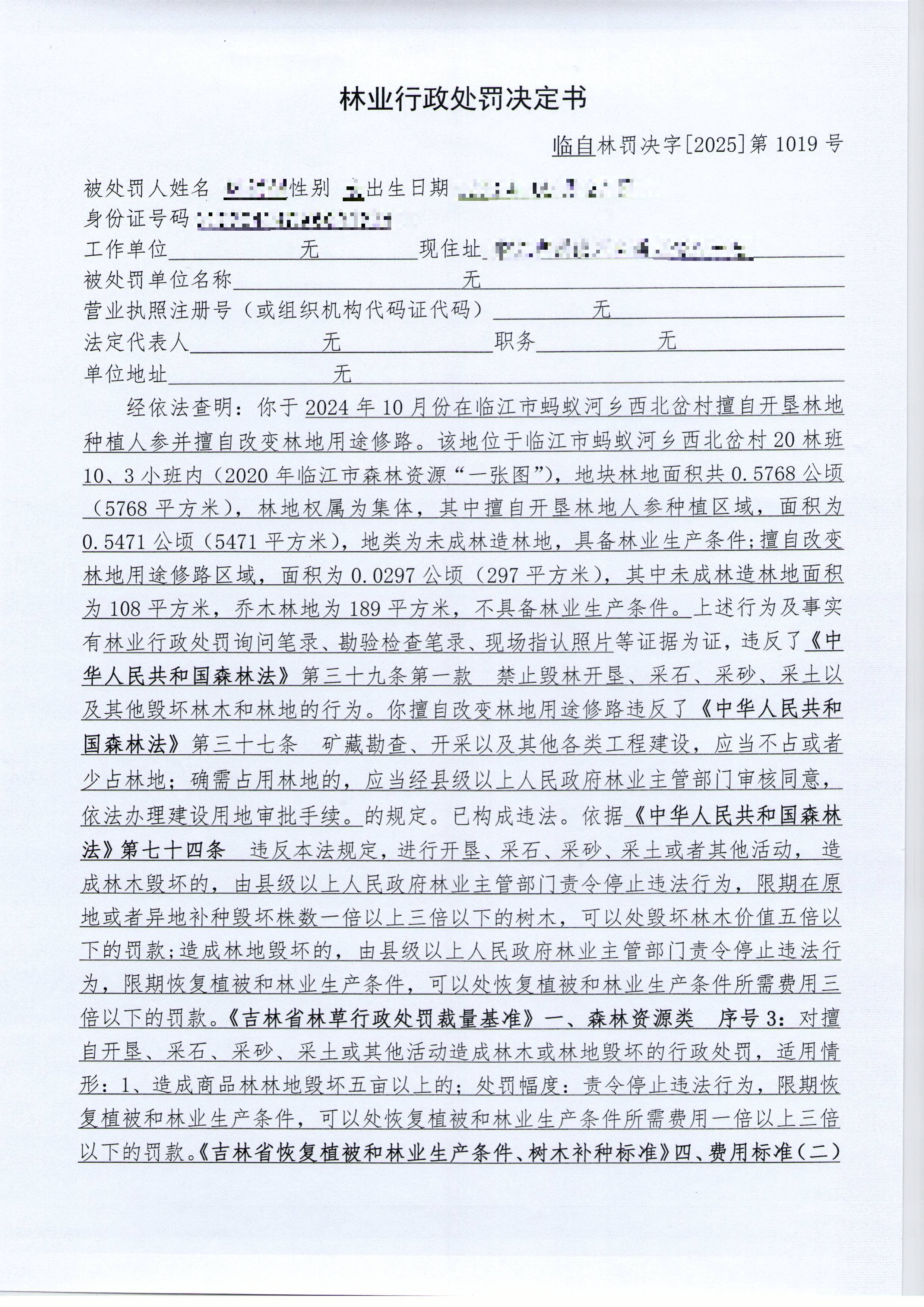 林业行政处罚决定书