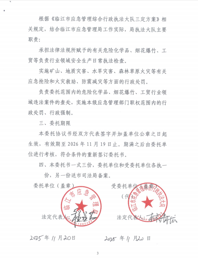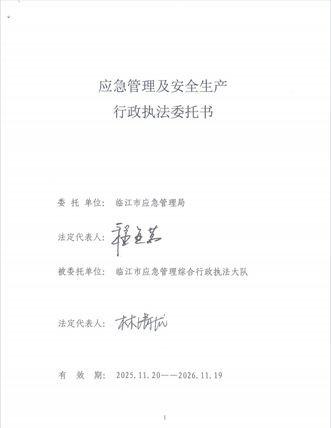 | 临江市应急管理局应急管理及安全生产行政执法委托书 |