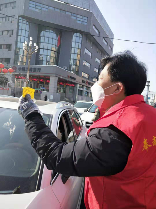 “你的眼睛不舒服,先回家休息吧”,“没事,我再坚持一下”,说完又开始了查看、登记过往车辆工作。这位带病坚持工作的是财务科科长张翼程,虽然患有严重的类风湿,不适合在寒冷的户外工作,可他并没有向领导提困难,服从安排,在配合社区开展疫情防控卡点登记工作中坚守岗位。在值守过程中,虹膜炎的老毛病又犯了,眼睛非常不舒服,他只是到医院上了药,按时到岗,值守登记。用坚守展现一名共产党员的担当。