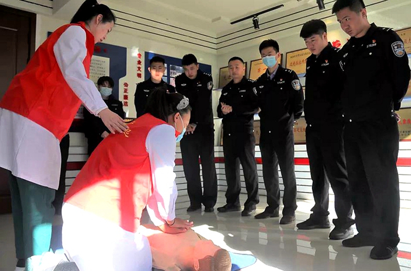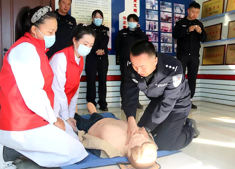 10月20日,临江市新市边境派出所邀请市人民医院志愿服务队到警营开展了应急救助培训活动。