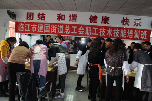 2017年10月17日,建国街道总工会与临江市总工会在建国街道解放社区共同举办“中西式花样面点”职工技术能力培训班。